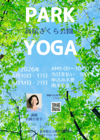 月日: (2026年)5/10、17、6/14、21(各回 日曜日) 場所:高尾さくら公園 ※雨天時は中止となります 時間:午前9時〜10時 定員:約30名 受付:申込不要 当日会場にて受付 休日の朝、ヨガで体をリフレッシュ!! 予定の合う時に是非ご参加ください(*^-^*) | |